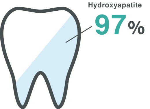 一般的に使用されるアパタイトは、正式名ハイドロキシアパタイト(別名ヒドロキシアパタイト*)のことを指し、ヒトの歯のエナメル質の97%、骨の65%を占める成分です。